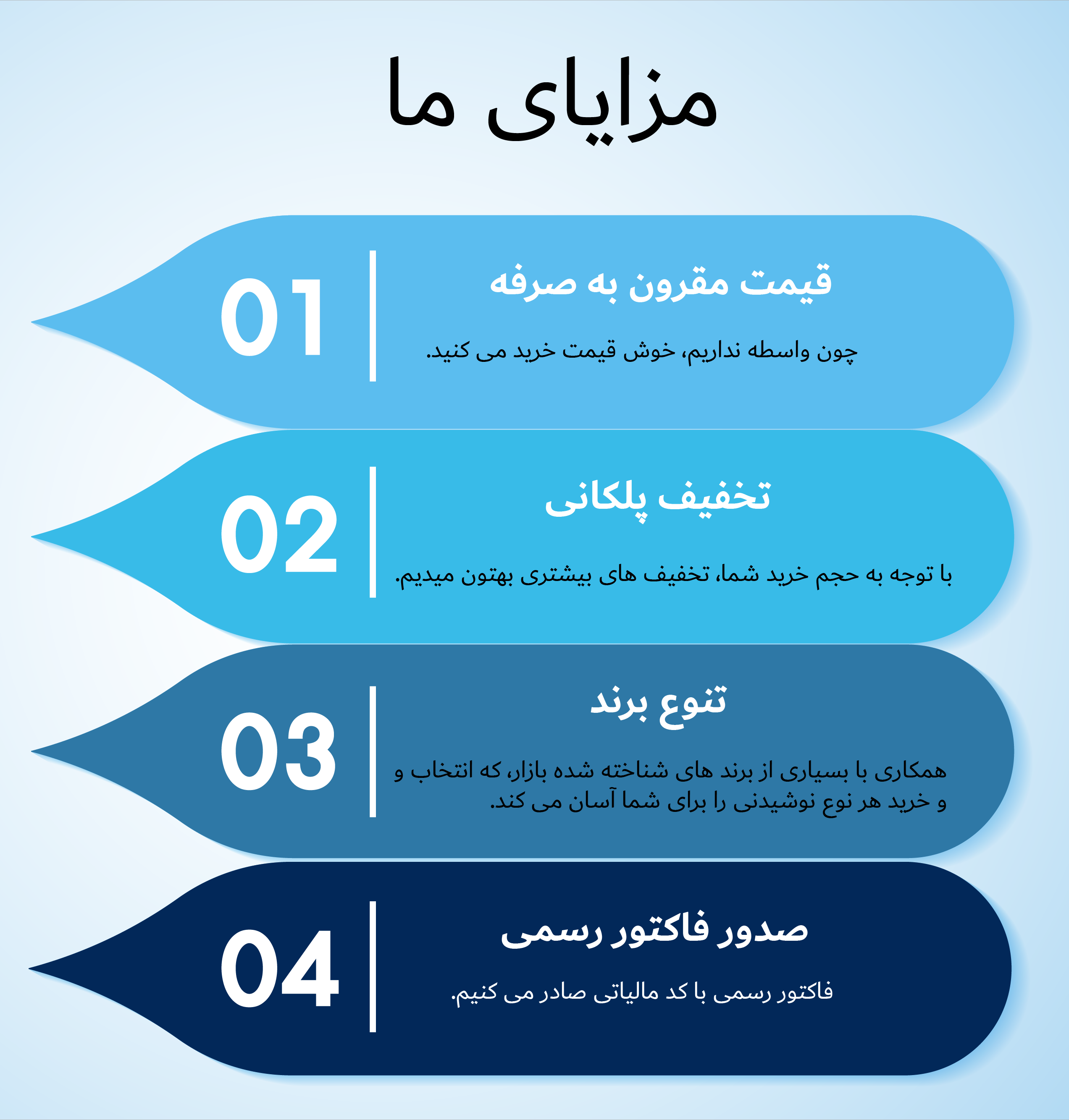 تامین کننده عمده و خرد نوشیدنی برای سازمانها، هتلها و رستورانها